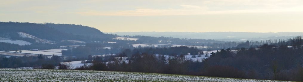A Take the footpath heading off up hill at the end of Goshill Road, skirting Pond Wood (on the National Trust map this route is marked in yellow). Continue about 1km until you meet a track (Botany Bay Lane, that links Tongs Farm with Chislehurst Common). Turn left on to this track then immediately right on a footpath passing the southern edge of Coopers’ School Playing Field.