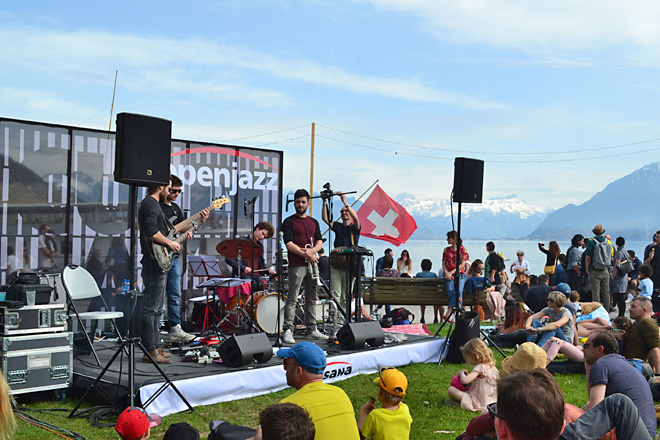 Cully Jazz has become a real gem on the international festival circuit. Big enough to attract some star acts (Birelli Lagrene, Gregory Porter, Lisa Simone etc) but small enough to feel easy to negotiate and to chance its arm with younger, local more experimental bands like this one, led by trumpeter Zach Ksyk, playing on the outdoor free stage. What a setting.
