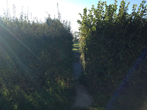 Continue around the edge of a field to the left (east) then sharp right (south). At Point 3 take another sharp right (heading west towards Downe House) at the intersection of footpaths (if you were to go left here, you’d soon enter a fantastic bluebell wood, best seen in May of course). Cross the road (Point 3.5) and enter the meadow (brilliant with daisies and buttercups from May to July) bordering Darwin’s house and garden, with small cricket pitch on your left. Continue, through a lovely little arch of small trees in the middle of the field.